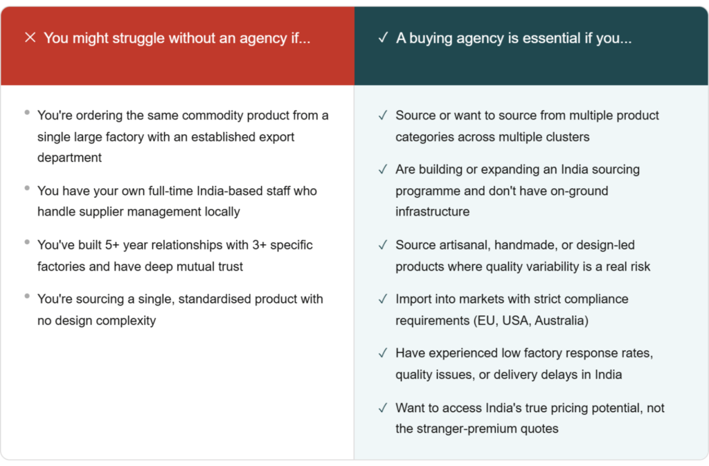 Not every buying agency is equal, and not every buyer is ready for every agency. Here are the conditions under which working with a professional India buying house will deliver maximum value: